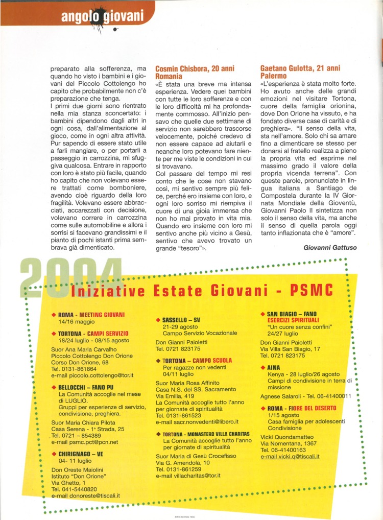 Don Orione oggi, 2004, 05
