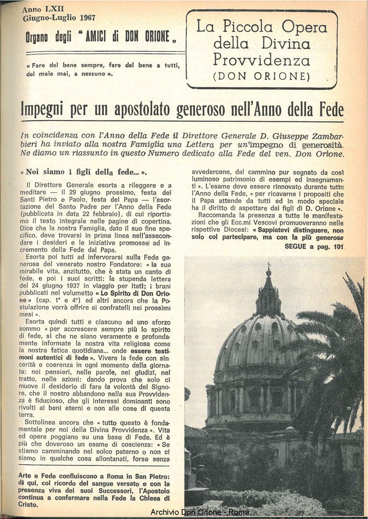 La piccola Opera della Divina Provvidenza, 62, 12, 15-06-1967